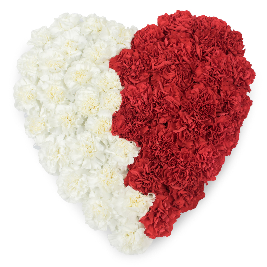 Available in Original, Deluxe and Grand sizes, the LOVING HEART can be tailored to suit your needs and setting. The Deluxe size is pictured and showcases the rich colour contrast between the pure white blooms and deep red carnations for a dignified, classic look. We use only premium-grade stems, ensuring long-lasting freshness and a refined finish for such an important occasion.